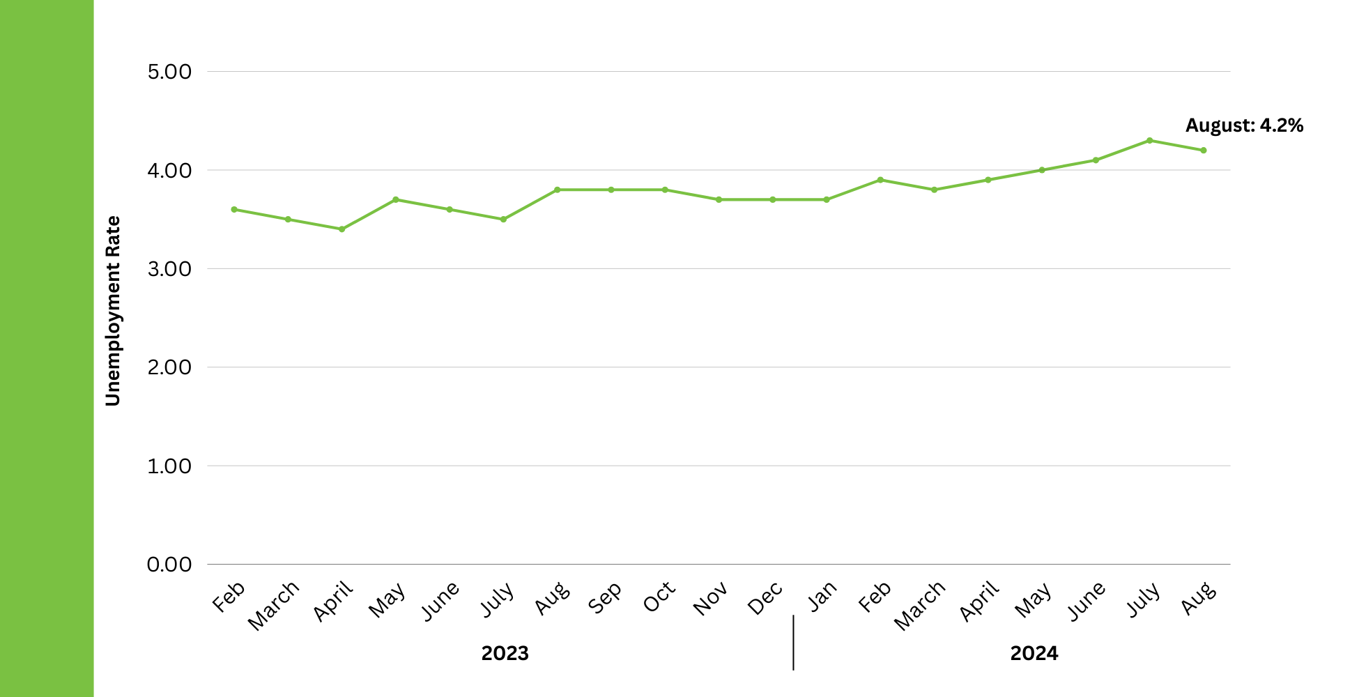 The unemployment rate edged up slightly from 4.1% to 4.2%.