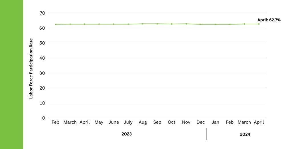 The labor force participation rate remained unchanged over last month, coming in at 62.7%. A good sign for hiring companies with more talent entering the jobs market.