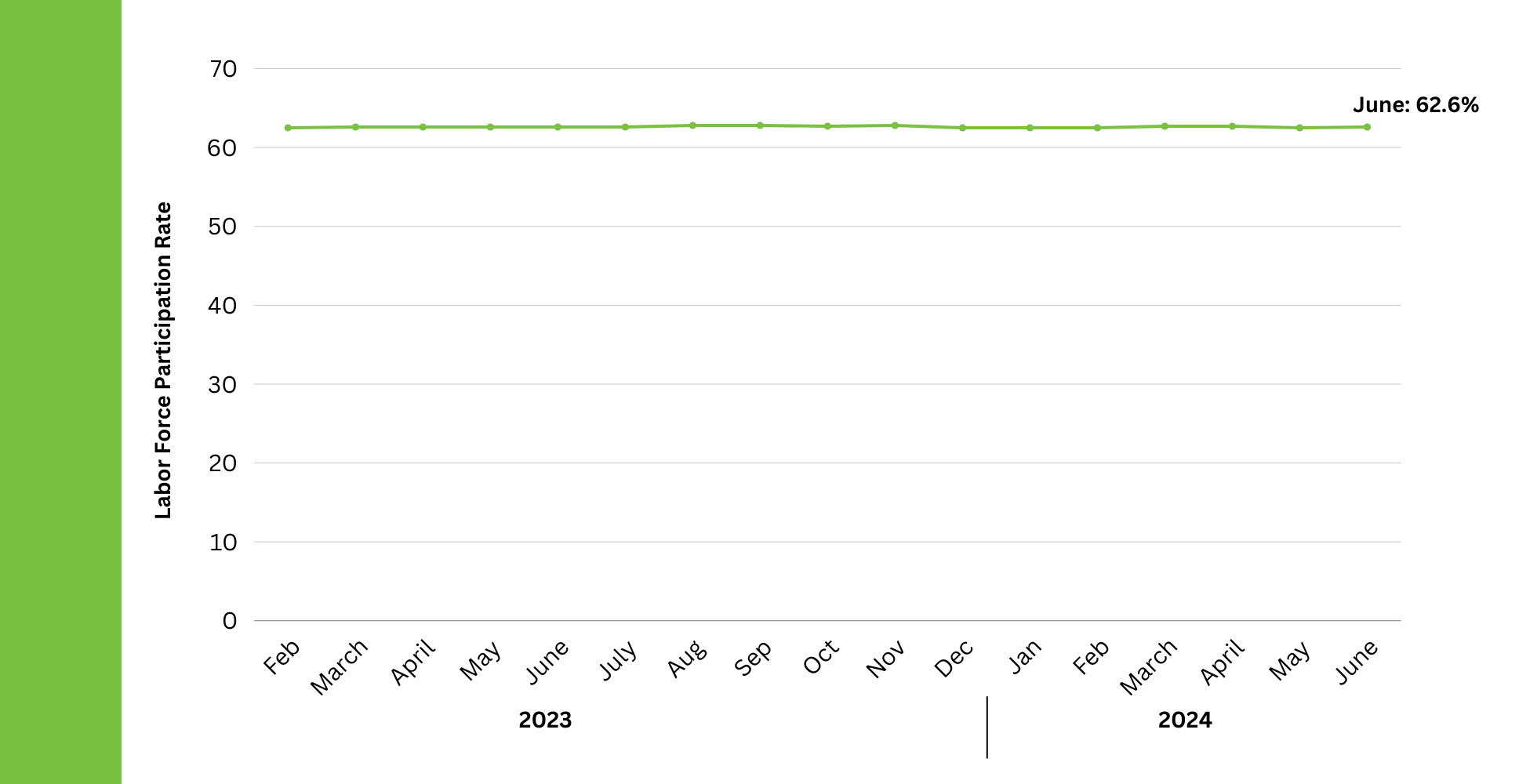 The labor force participation rate increased slightly from 62.5% to 62.6%.