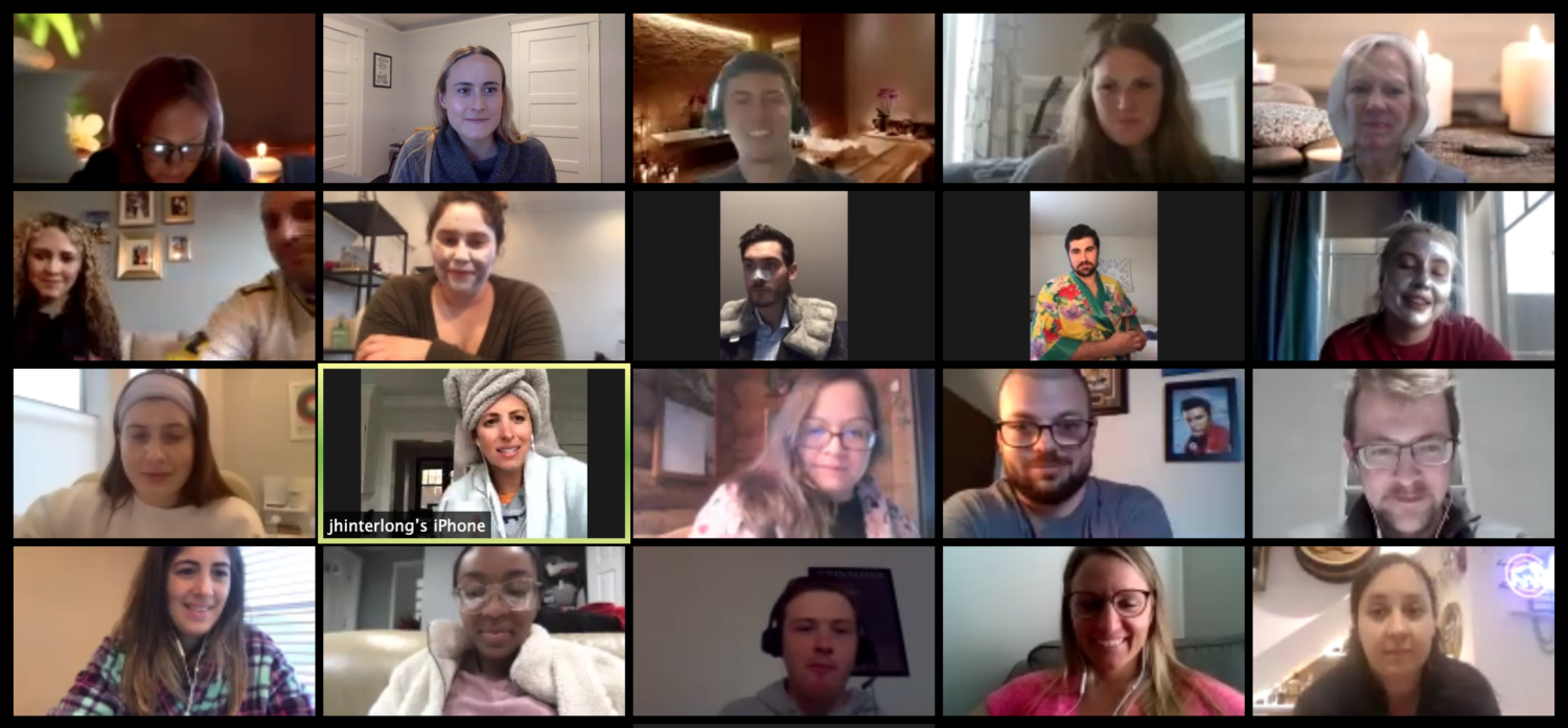 While in office, we typically host several celebrations weekly for employee’s work anniversaries or accomplishments. We have kept this tradition going by joining one another virtually, beverage of choice in hand.