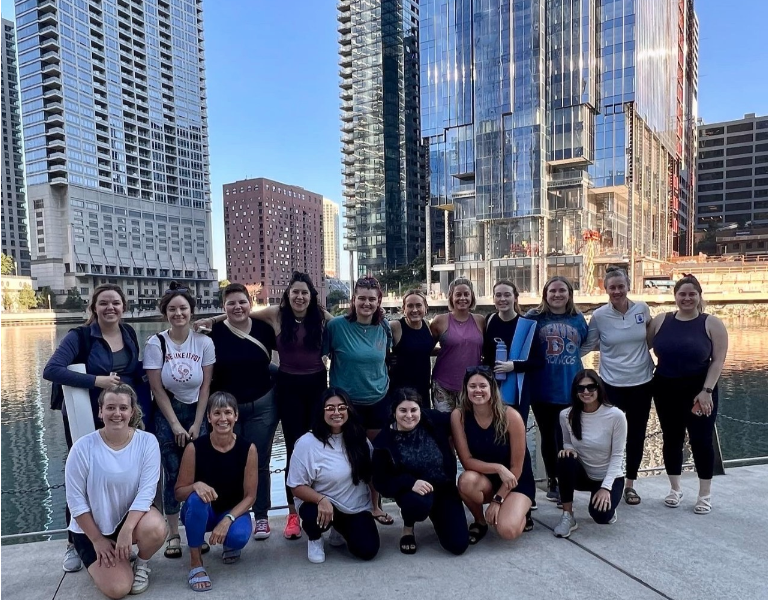 We hosted a morning yoga class along the Chicago River, courtesy of Room to Breathe yoga, for any LaSallian wanting to get their body moving before heading to the office. Integrating self-care, health and some relaxation into a busy week helped LaSallians recharge to take on the day.
