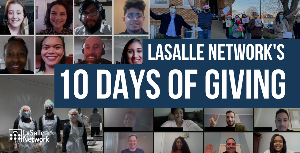 On Day 7 of our 10 Days of Giving we partnered with three different causes. A group of LaSallians spent time with Aspire Chicago, an organization that supports people with disabilities. One team sang carols to Aspire residents at three group home facilities for adults with special needs, while another joined residents virtually for holiday BINGO. Another group partnered with Cara Chicago, which helps people affected by poverty find jobs. LaSallians sorted and organized more than 7,000 clothing donations made to Cara Chicago to help those who need professional clothing for job interviews. Another team spent the afternoon working with Year Up Chicago students on crafting the perfect resume. Year Up brings talented young adults and top companies together to launch careers, power business, and build community.