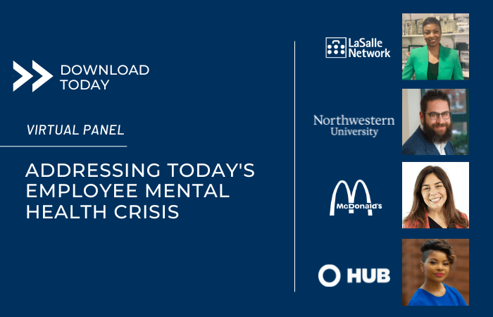 In this 1-hour virtual event, eligible for 1 SHRM PDC credit hour, LaSalle Network Chief Human Resources Officer, Sirmara Campbell, hosted a Q&A with licensed Clinical Psychologist, Jacob Goldsmith, Ph.D., who has published work and spoken across the country extensively on topics related to stress management, work-life balance and workplace issues. Following this Q&A, Sirmara and Dr. Goldsmith were joined by Chrissy Tarpey Stamm, US People PMO & Alignment Manager at McDonald’s, and J’ai Brown, Vice President of Human Resources at HUB International, to share unique ways their companies drive employee wellness initiatives and address today’s workplace exhaustion.
